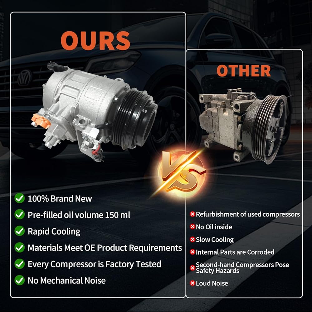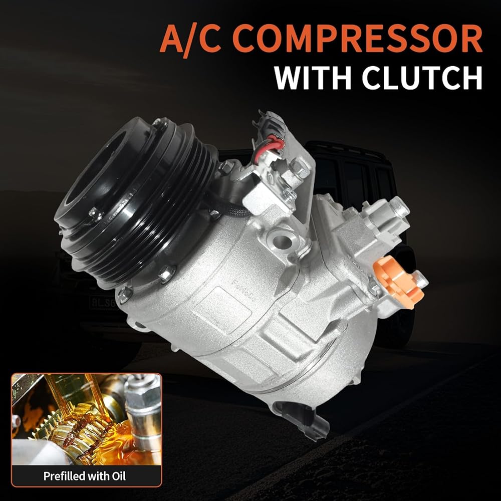 【RELIABLE AC COMPRESSOR REPLACEMENT 】 Our compressors undergo rigorous pressure testing to detect leaks, guaranteeing a long service life. Refrigerant Type: R134a;Clutch Included: Yes; Oil Prefilled: 150 ml(10 ml tolerance)