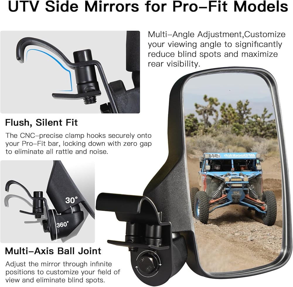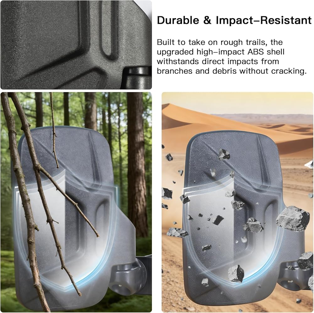 【تصميم ممتص للصدمات ومنفصل】 مصمم للدفاع المزدوج على المسارات الوعرة. تضمن الوسائد المدمجة المضادة للاهتزاز داخل المشبك رؤية ثابتة وخالية من الخشخشة على الصدمات. وفي الوقت نفسه، تسمح المفصلة الانفصالية المصممة هندسيًا للمرآة بالطي بأمان عند الاصطدام بالعوائق، مما يمنع حدوث ضرر دائم.