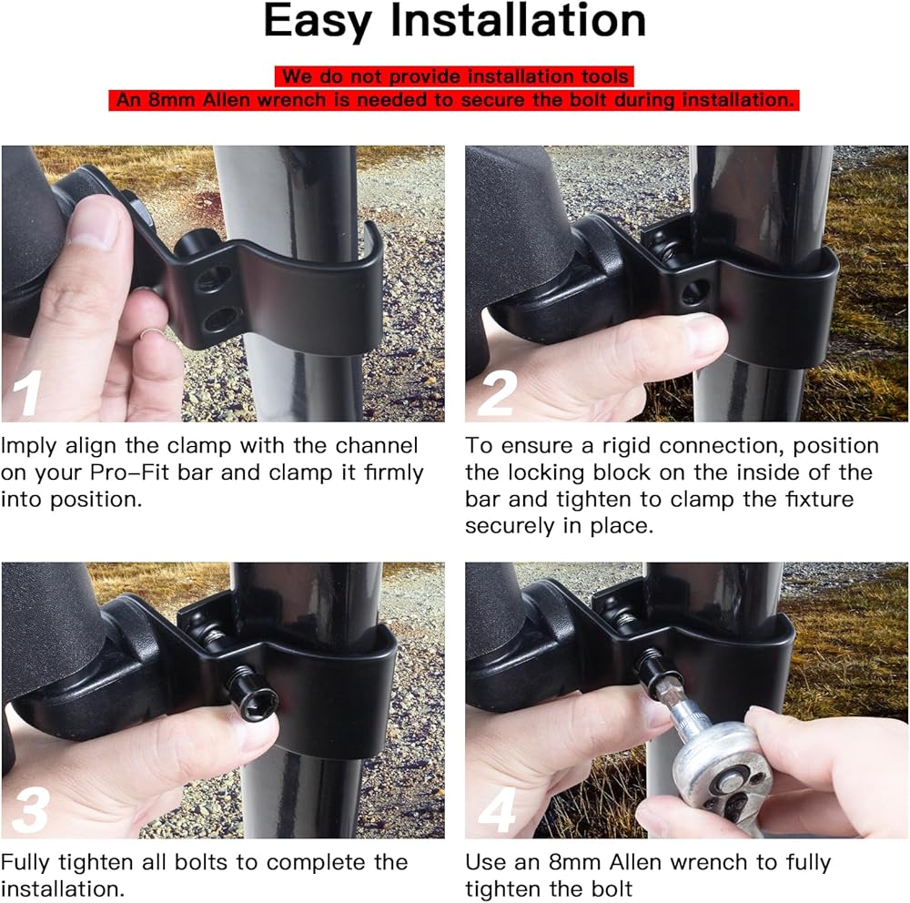 【مجموعة كاملة، تركيب مباشر】 تتضمن العبوة زوجًا من المرايا (السائق والراكب) وجميع أدوات التثبيت الضرورية. للتثبيت الآمن، ستحتاج إلى مفتاح سداسي عشري مقاس 8 مم. تم تصميمه باستخدام نظام مشبك بديهي، والإعداد سريع وبسيط. اتبع دليلنا المتضمن خطوة بخطوة للحصول على ملاءمة مثالية وخالية من الخشخشة في دقائق.