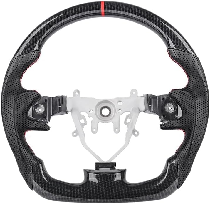 Real Carbon Fiber Steering Wheel for Subaru Impreza WRX & STI 2015-2021 VA Chassis, JDM Style Flat Bottom Red Stripe Non-Slip Perforated Nappa Leather Grips, OEM Fit & Interior Replacement Upgrade