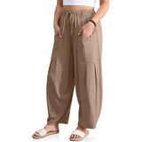 Women's Linen Harem Pants made from breathable linen blend fabric offer a lightweight feel, ideal for all day comfort with added durability for everyday wear