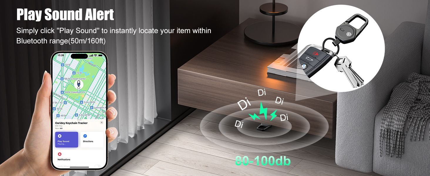نغمة تحديد الموقع بقوة 90 ديسيبل وتذكير بالخلف: توقف عن إضاعة الوقت في البحث عن جهاز تعقب المفاتيح في غير محله. ضمن نطاق بلوتوث يبلغ 160 قدمًا (50 مترًا)، ما عليك سوى النقر على "تشغيل الصوت" لتشغيل مكبر الصوت المدمج بصوت عالٍ. يقودك الرنين المسموع مباشرة إلى سلسلة المفاتيح الخاصة بك في ثوانٍ - حتى في المناطق العمياء الداخلية - مما يجعلها منقذًا للحياة في الصباح المحموم. بالإضافة إلى ذلك، مع تفعيل ميزة "الإخطار عند التخلف عن الركب"، ستحصل على تنبيه فوري إذا ابتعدت دون أغراضك الأساسية، مما يوقف الخسارة في مساراتها.