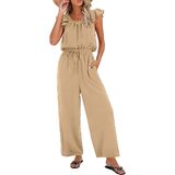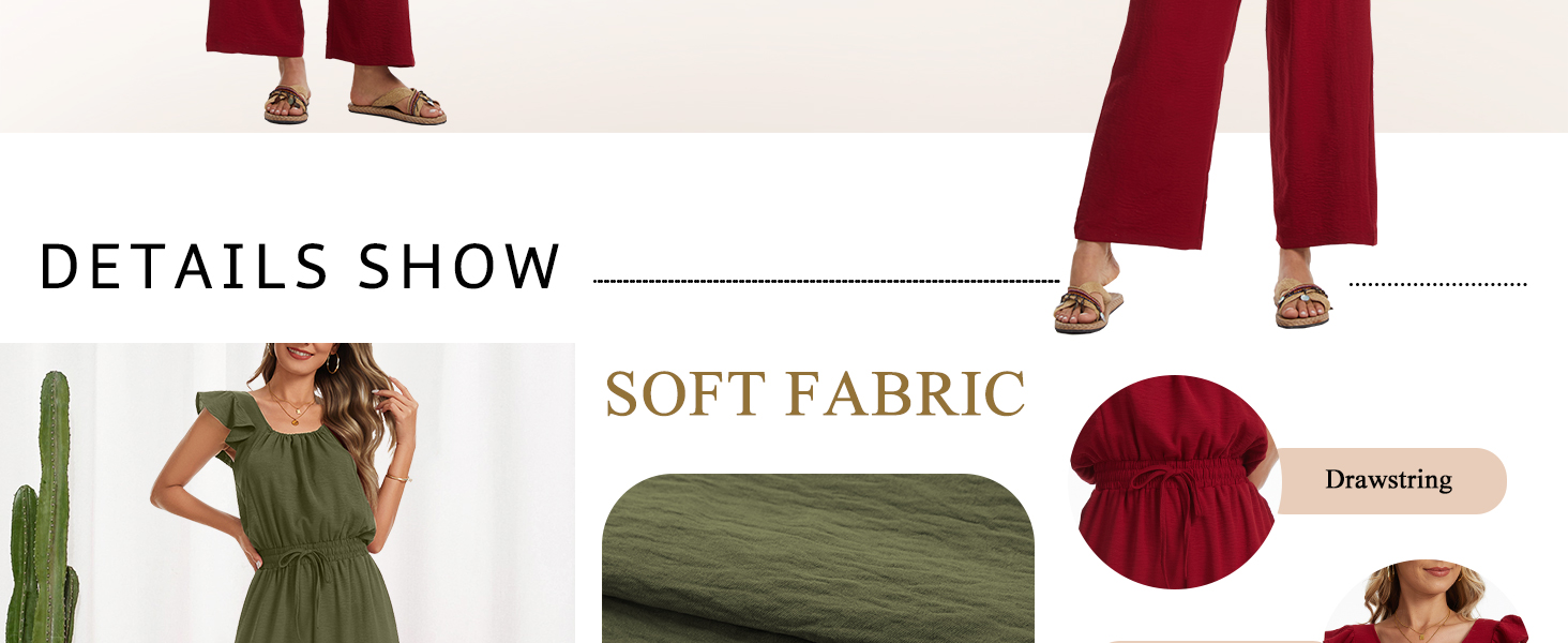 • المزايا: تتميز هذه البذلة النسائية بأكمام مكشكشة رقيقة وخط عنق مجمع، تصميم برباط عالي الخصر سهل الارتداء، الخصر برباط قابل للتعديل يسمح بمقاس مخصص. محيط ويتكيف مع أنواع ومقاسات الجسم المختلفة، مما يضيف لمسة أنثوية وبوهو إلى مظهرك الكاجوال. يبقيك القطع بدون أكمام منتعشًا ومرتاحًا لأيام الصيف أو نزهات الطقس الدافئ.