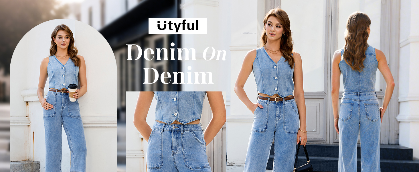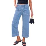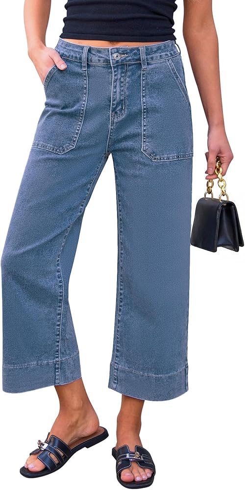 Utyful كابري جينز للنساء واسعة الساق العصرية عالية الخصر فضفاض مستقيم الساق الصيف عادية بسط الدينيم سراويل كابري in Kuwait