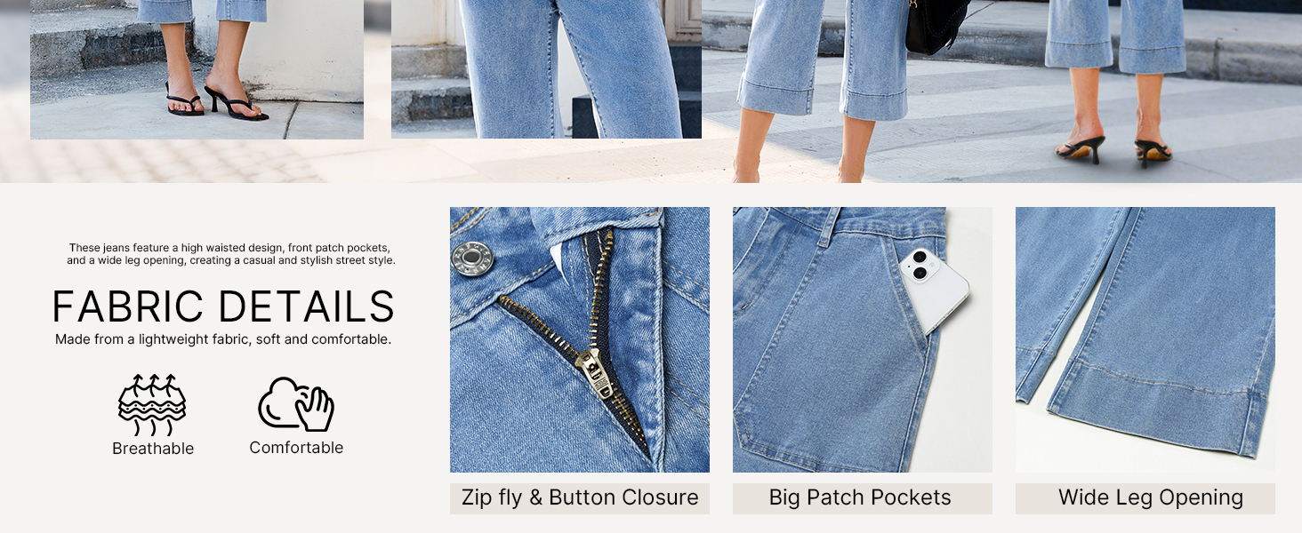 • صورة ظلية عصرية ذات أرجل واسعة: توفر السراويل ذات الأرجل العريضة عالية الخصر للسيدات مقاسًا مريحًا وخروجًا أنيقًا عن الجينز الضيق التقليدي، مما يضمن الراحة دون التنازل عن الأناقة، ومناسب لمختلف أنواع الجسم