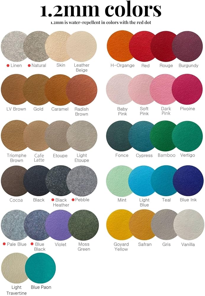 * 2mm thick felt material makes the bag look better and it protects the inside of your bag. * 1.2mm thick Felt material is recommended for those who want to use the bag as naturally as possible. 1.2mm Is also recommended for small and large bags.