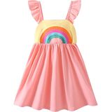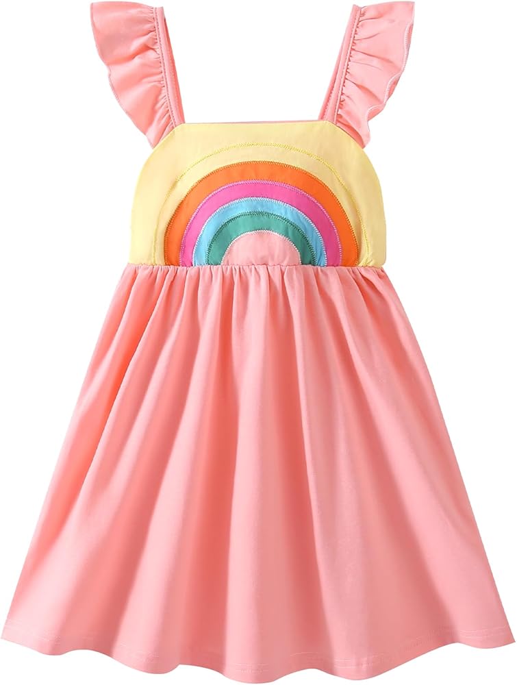فستان Julerwoo للفتيات الصغيرات من القطن برباط مصبوغ فساتين صيفية كاجوال بألوان قوس قزح من 2 إلى 8 سنوات in Kuwait
