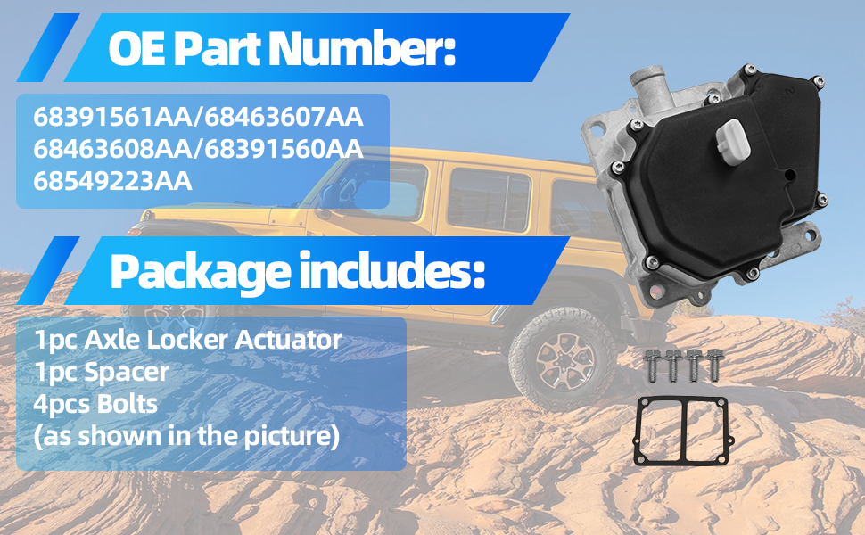 Package Includes: 1pc Axle Locker Actuator, 1pc Spacer, 4pcs Bolts ,as shown in the picture.