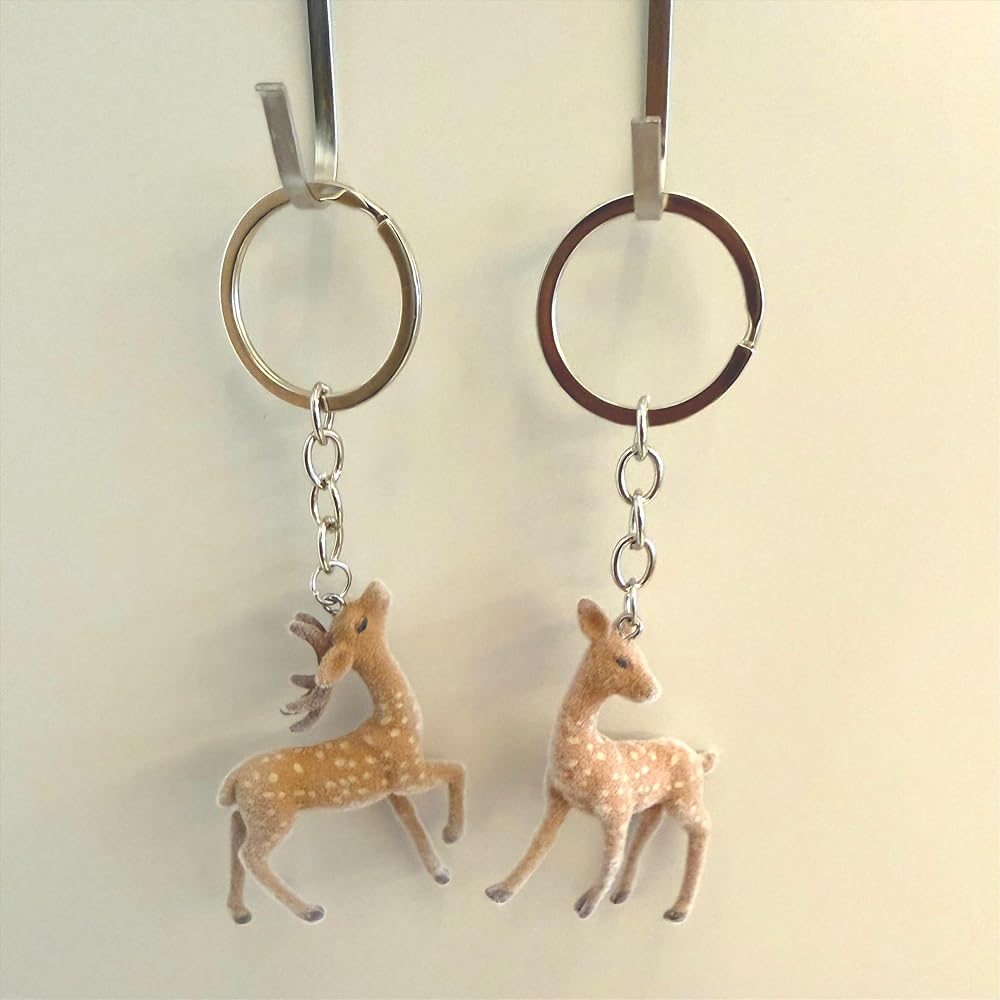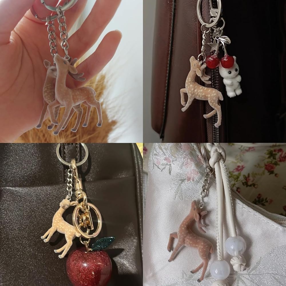 Brown deer print keychain Mini keychains, vintage animal print keychains with Christmas atmosphere, combined with a sweet fuzzy deer print design.the Y2K keychains is very suitable as a gift, simple yet versatile