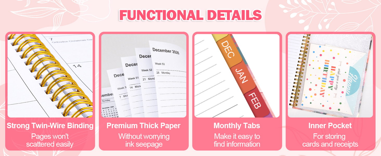 • هدية مثالية - يشتمل مخطط 2026-2027 الأسبوعي والشهري على جيوب داخلية وإشارات مرجعية رائعة و12 علامة تبويب شهرية، وهو مثالي لتدوين الملاحظات والتخطيط اليومي والتنقل بين العمل أو المدرسة أو المنزل. هدية مدروسة للأصدقاء أو العائلة أو المعلمين أو أي شخص لديه حياة مزدحمة - رائعة لأعياد الميلاد والمناسبات الخاصة. في حالة وجود أي مشكلات تتعلق بالجودة، يرجى الاتصال بنا عبر أمازون.