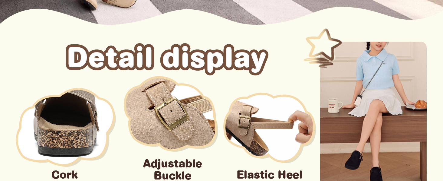 وسادة فائقة ودعم للقوس: مجهزة بوسادة قدم من الفلين الطبيعي بالإضافة إلى نعل داخلي من الإسفنج الذكي، توفر هذه القباقيب توسيدًا داعمًا طوال اليوم. يعزز دعم القوس المدمج النمو الصحي للقدم، ويوفر راحة لا تقبل المنافسة مع كل خطوة للأطفال النشيطين، وهو مثالي للارتداء اليومي للأولاد والبنات.