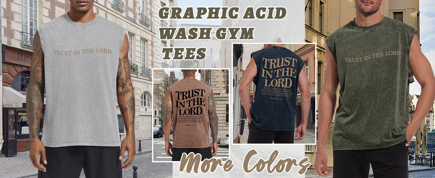 قمصان رجالي مسيحية بدون أكمام تثق في الرب الإله يسوع الإيمان الديني آية الكتاب المقدس قمصان جرافيك حمضية للجيم in Kuwait