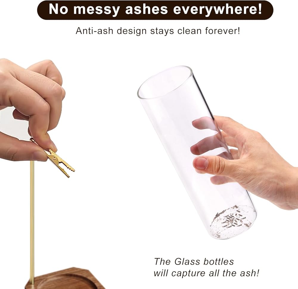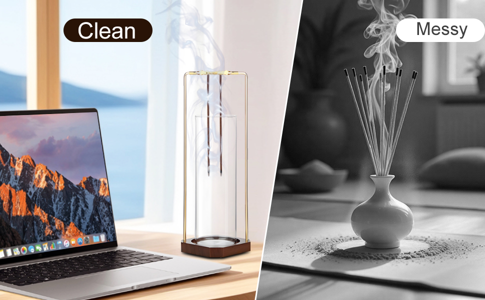 1. محلول البخور الكل في واحد مصنوع بمشبك معدني مزدوج وصائد رماد زجاجي، يجمع حامل البخور هذا بين العملية والأناقة. قم بإزالة الحجرة الزجاجية الأنيقة بسهولة للتنظيف السريع، مما يضمن تجربة خالية من الفوضى أثناء حرق البخور رأسًا على عقب.