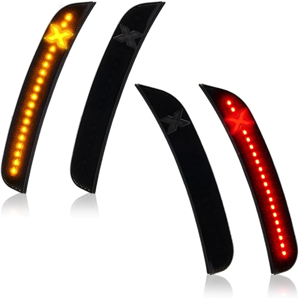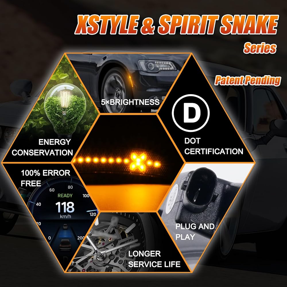 4 قطع مصابيح LED للعلامات الجانبية مصابيح علامة حمراء كهرمانية لكرايسلر 300 2015-2021، المصد الخلفي الأمامي، ضوء ركن ركن السيارة، عدسة مدخنة Xstyle Spirit Snake Series (في انتظار براءة اختراع)