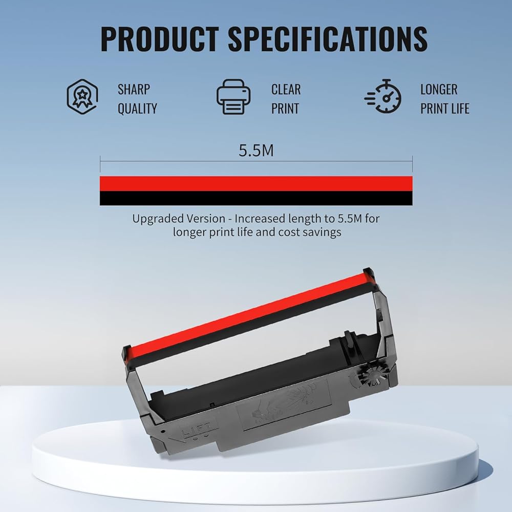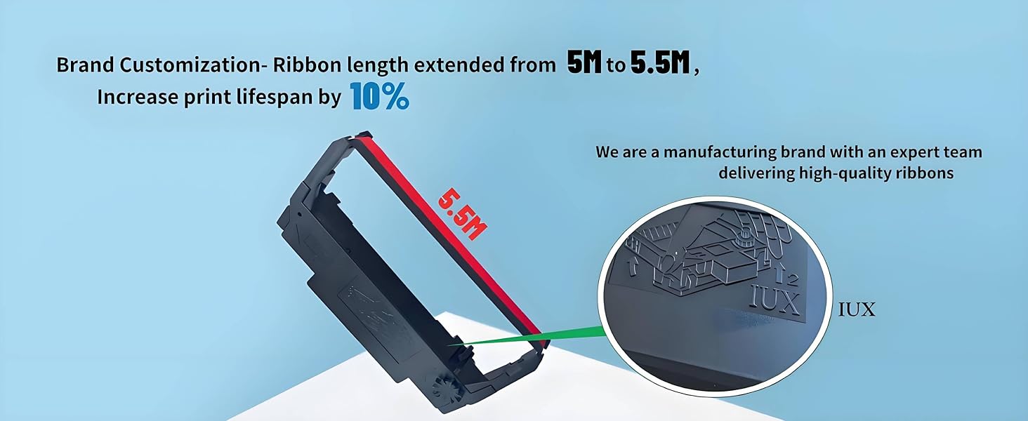 عمر افتراضي ممتد: يوفر شريط الطباعة الذي تمت ترقيته بطول 5.5 متر طولًا أكبر بنسبة 10% من الإصدار القياسي بطول 5 أمتار. وهذا يعني أنها تدوم لفترة أطول، مما يقلل من تكرار الاستبدال ويوفر المال