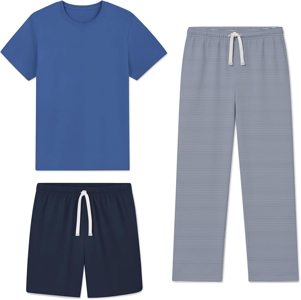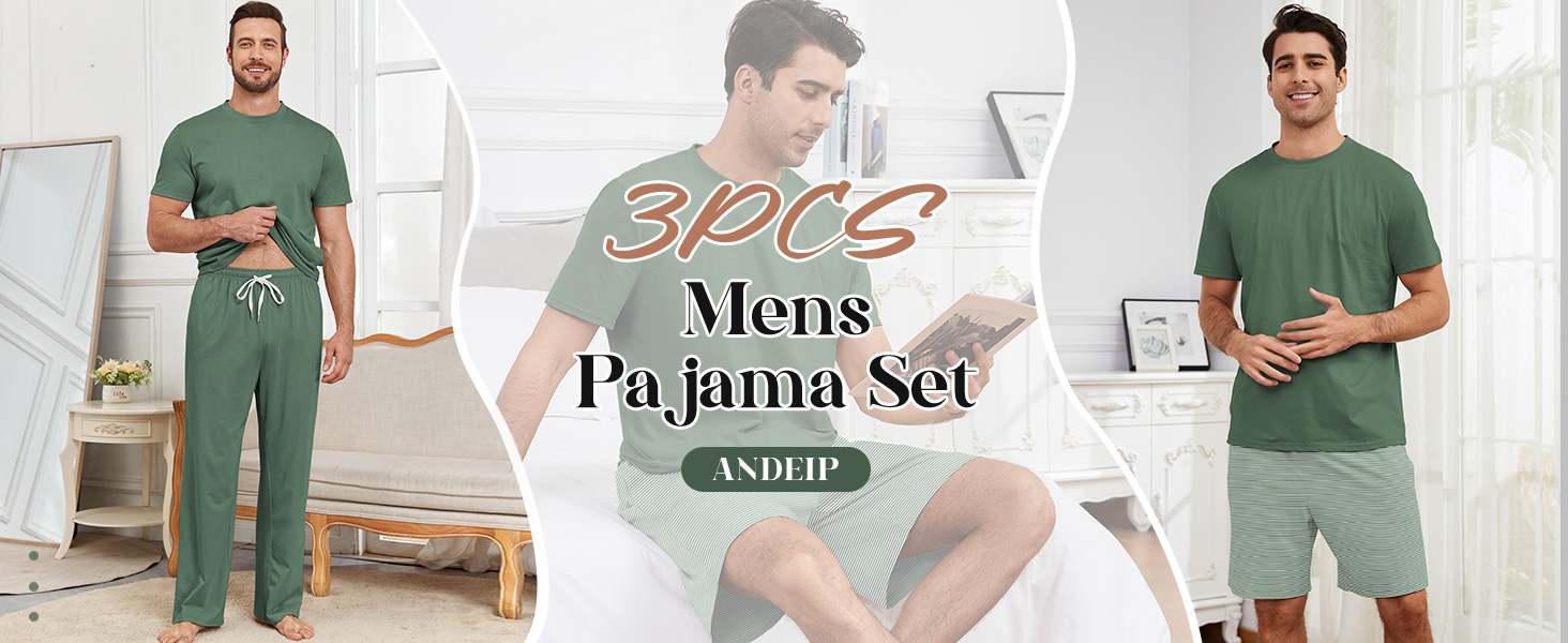 EASY MIX MATCH SET:You can MIX AND MATCH these 3 separates to create new looks every day.The men's pajama shors sets keep you cool when the weather warms up and the pants set keep you warm in the cold day.This men sleepwear is a perfect choice for year-round comfor