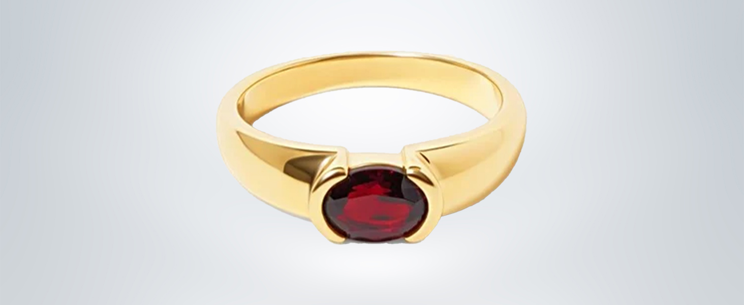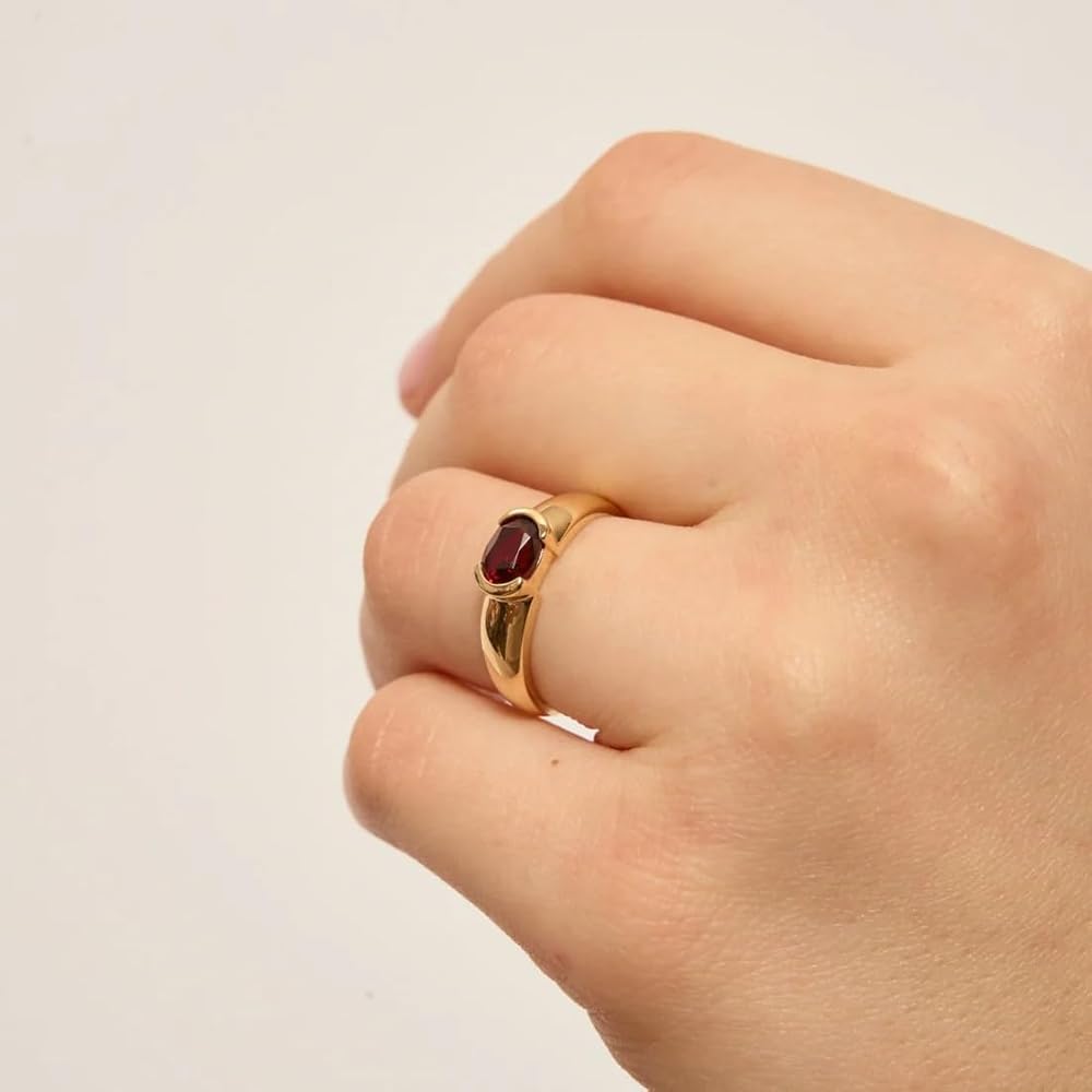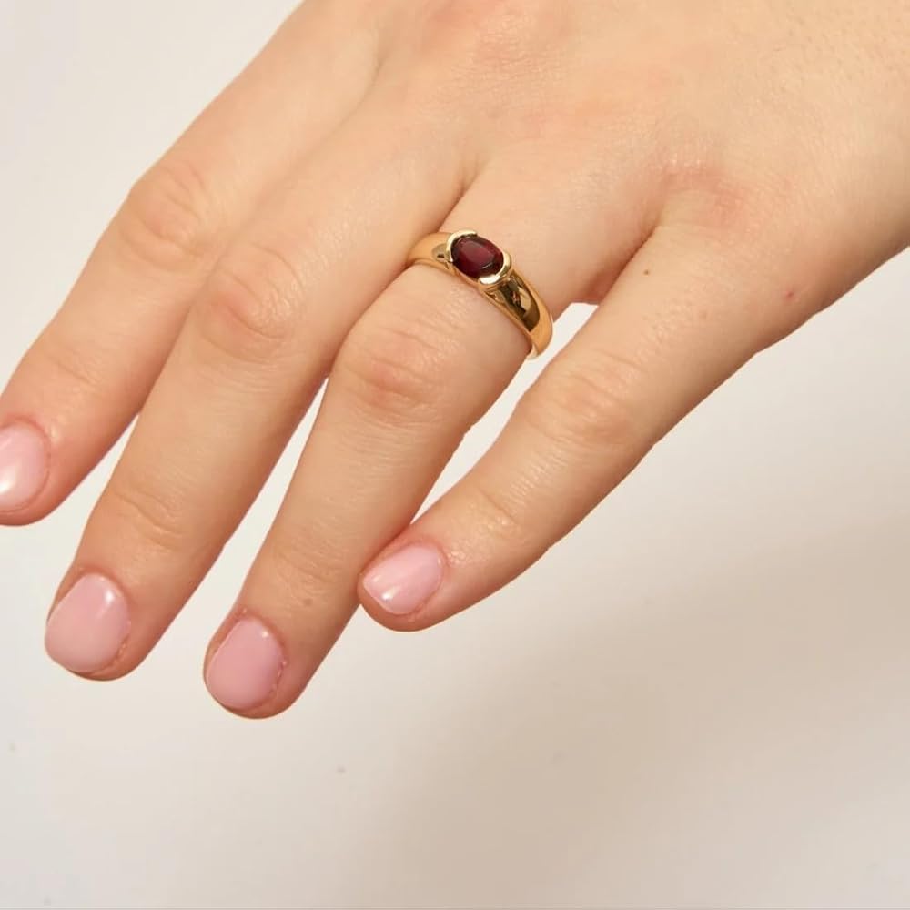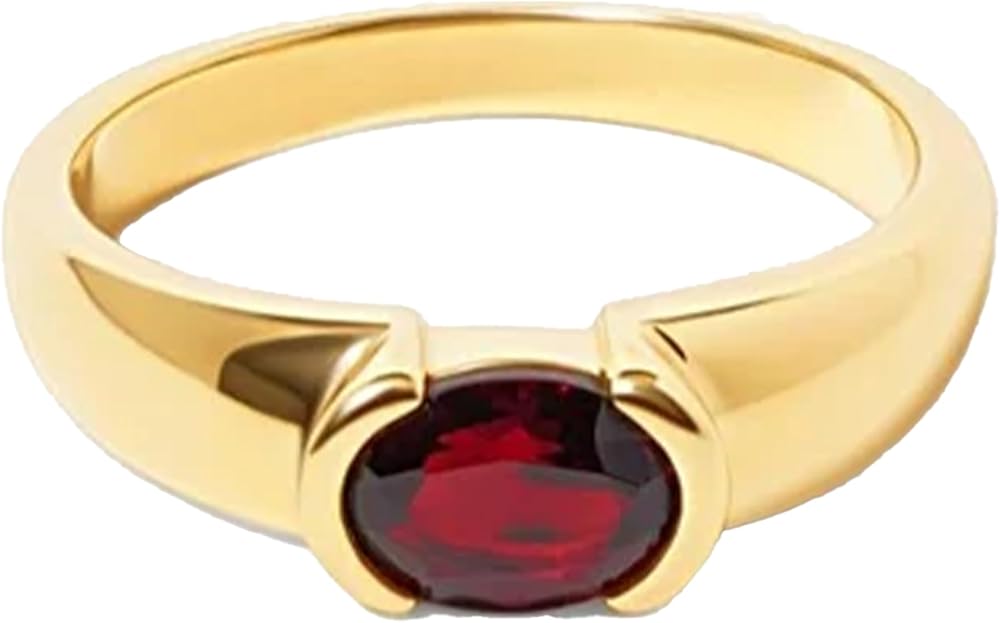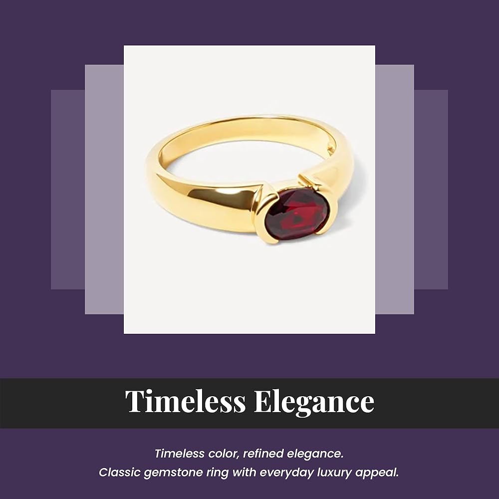 • 925 Sterling Silver Oval Garnet Gemstone Fancy Ring, 18K Gold Vermeil, Comfort Fit Band, Engagement Anniversary Wedding Ring for Women, Size 10