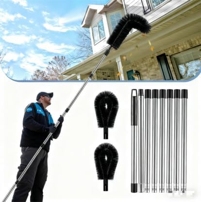 • 【أدوات تنظيف المزاريب】أدوات تنظيف الميزاب من الأرض مجهزة بفرشاة وأعمدة لتنظيف الأسطح. تتيح لك الأدوات الوصول إلى الأفاريز البعيدة والأسطح العالية بدون سلم، وهي آمنة ومريحة ومثالية للأماكن التي يصعب الوصول إليها. يمكن ارتداؤه مع أدوات غسيل الميزاب من أجل الشطف الشامل، مما يجعل تنظيف الميزاب والسقف أمرًا سهلاً.