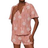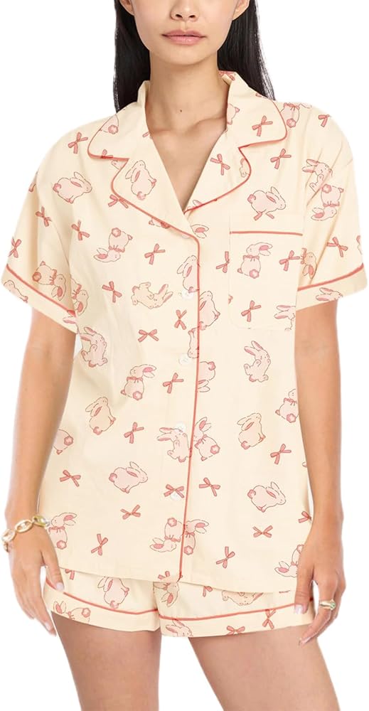 Women's Bunny Easter Shorts Pajamas Set Rabbit/Carrot Print Short Sleeve Shirt and Shorts 2 Piece Easter Outfit