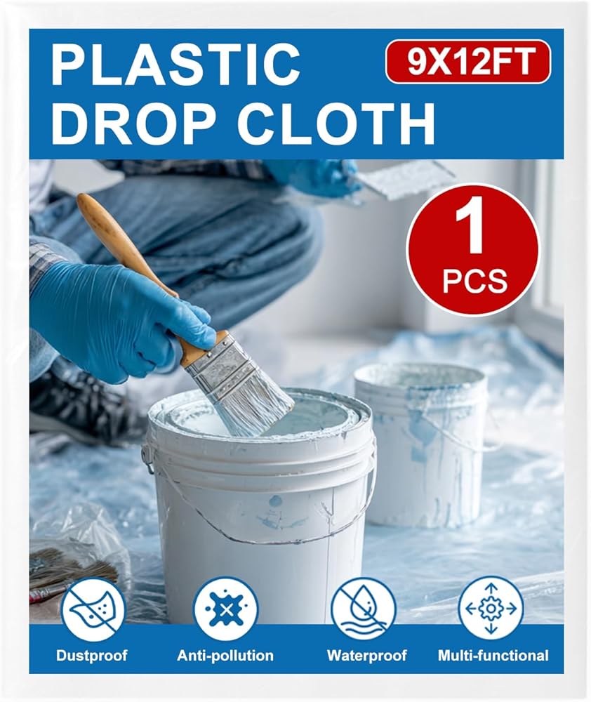 • 【Extra-Large for Full Coverage】Each pack includes 1 pieces of 12x9 ft plastic drop cloths. Their extra-large size fits various furniture types effortlessly, ensuring every corner and gap is fully protected.