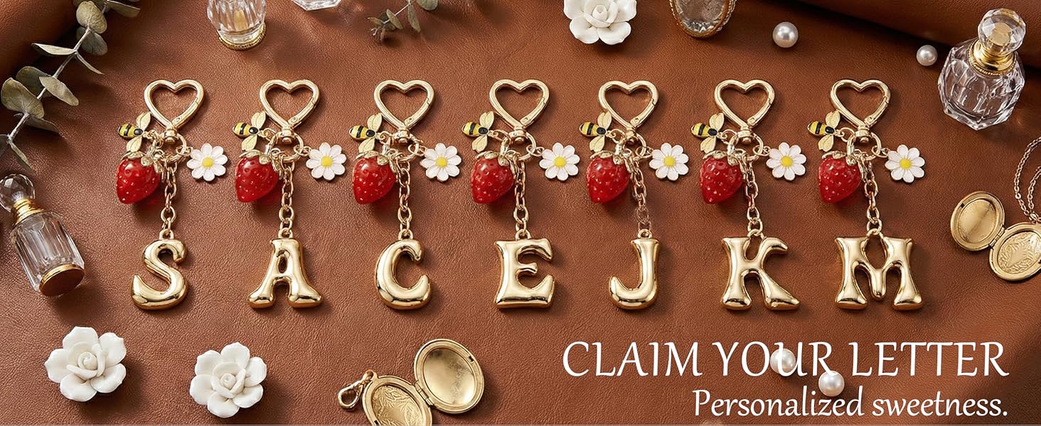 Sweet Personalized Gift for Her: This strawberry and daisy initial keychain is the ideal personalized gift for birthdays, Valentine's Day, or anniversaries. It is a thoughtful and stylish way to surprise a best friend, daughter, or bridesmaid with a unique "strawberry girl" aesthetic charm that radiates personality and charm