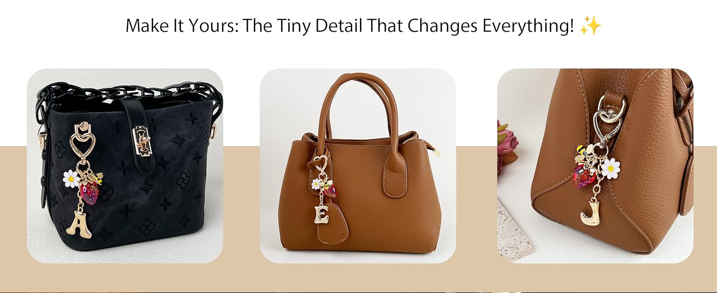 Premium Materials & Durable Quality: Crafted from high-quality gold-plated alloy, this keychain accessory is hypoallergenic, fade-resistant, and lightweight for comfortable carry. We have used reinforced connection points to ensure the 3D strawberry and delicate charms stay securely attached, offering long-lasting shine and durability for active lifestyles
