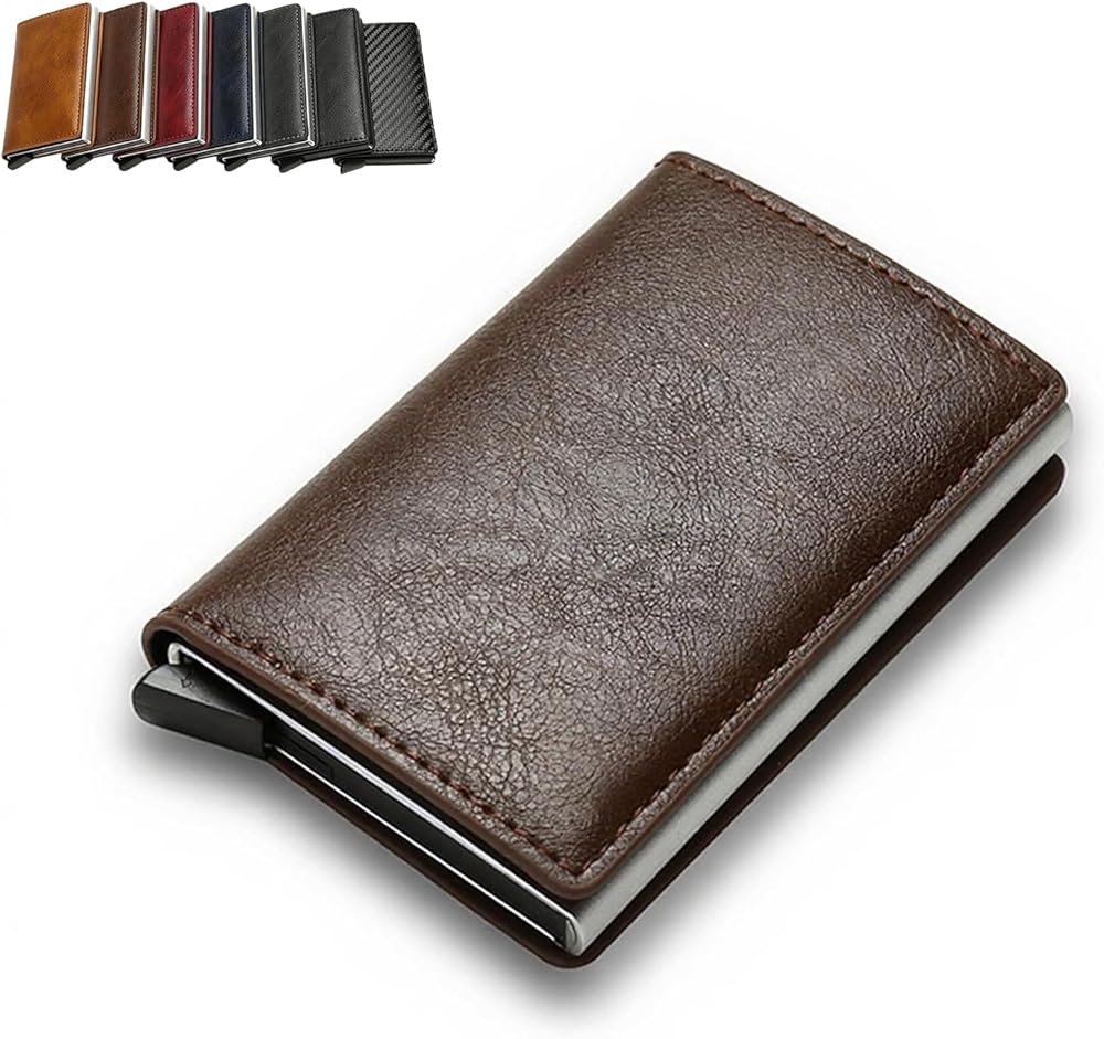 محفظة تبديل بسيطة، محفظة بسيطة، محفظة جلدية أصلية للرجال، حجب RFID، حامل بطاقة الائتمان مضاد للسرقة، محافظ منبثقة تلقائيًا (بني) in Kuwait