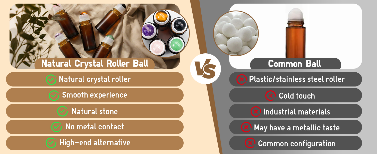 Unique Natural Rose Quartz Roller Balls:Each bottle features a genuine rose quartz gemstone roller ball — smooth, cooling, and naturally energizing. Unlike standard stainless steel, these crystal rollers help evenly distribute essential oils while adding a touch of elegance and healing energy.