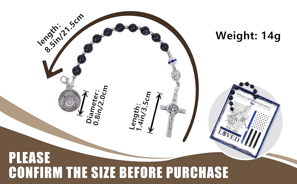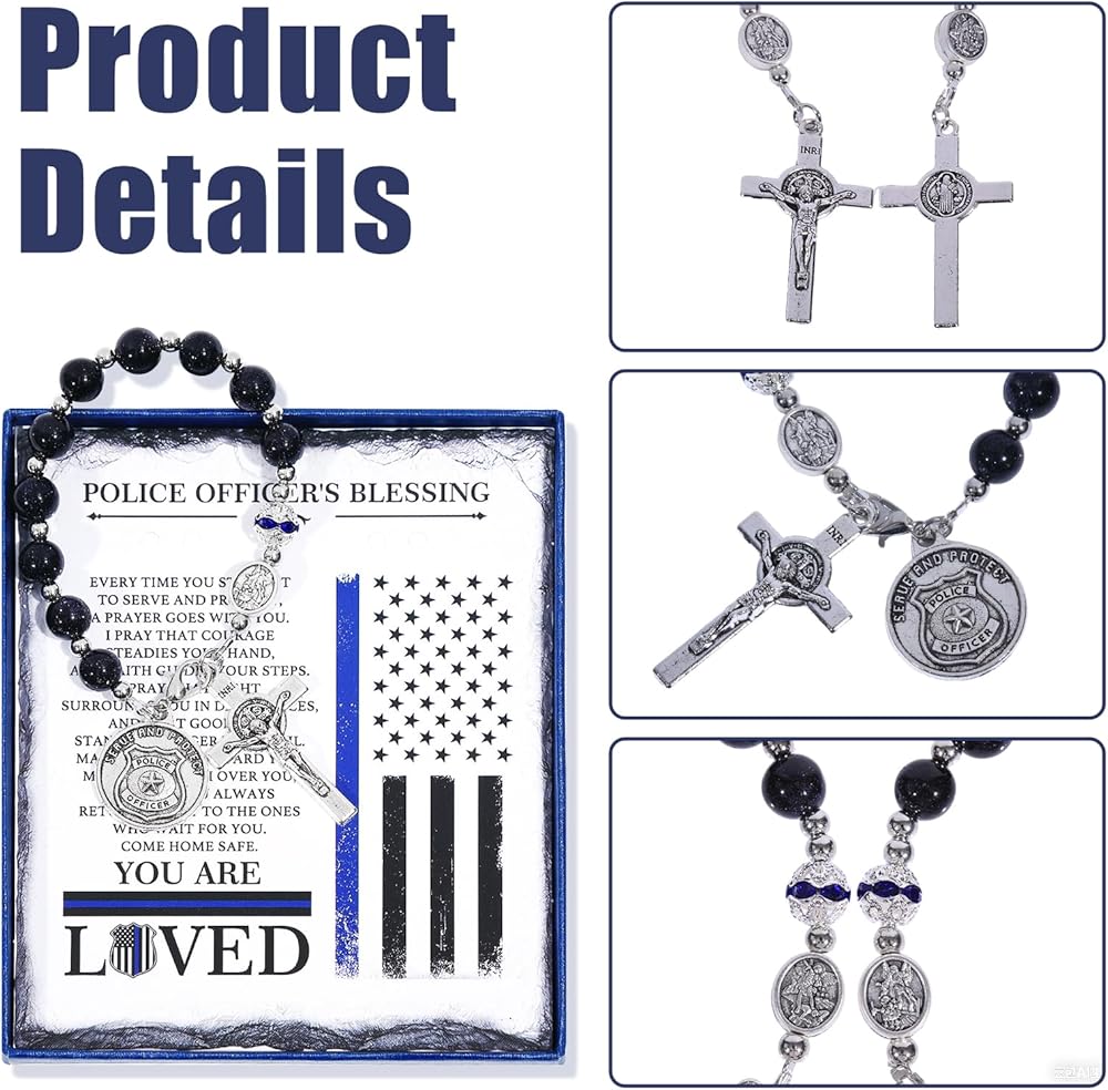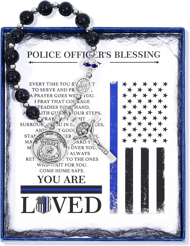مجموعة كاملة جاهزة للهدايا: على عكس المسبحة العامة، تأتي هذه في صندوق هدايا فاخر يحتوي على بطاقة صلاة "مباركة ضابط الشرطة" بتصميم العلم الأمريكي. إنها الهدية المثالية المشجعة للتخرج من أكاديمية الشرطة، أو الترقية، أو التقاعد، أو عيد الأب، أو عيد الميلاد.