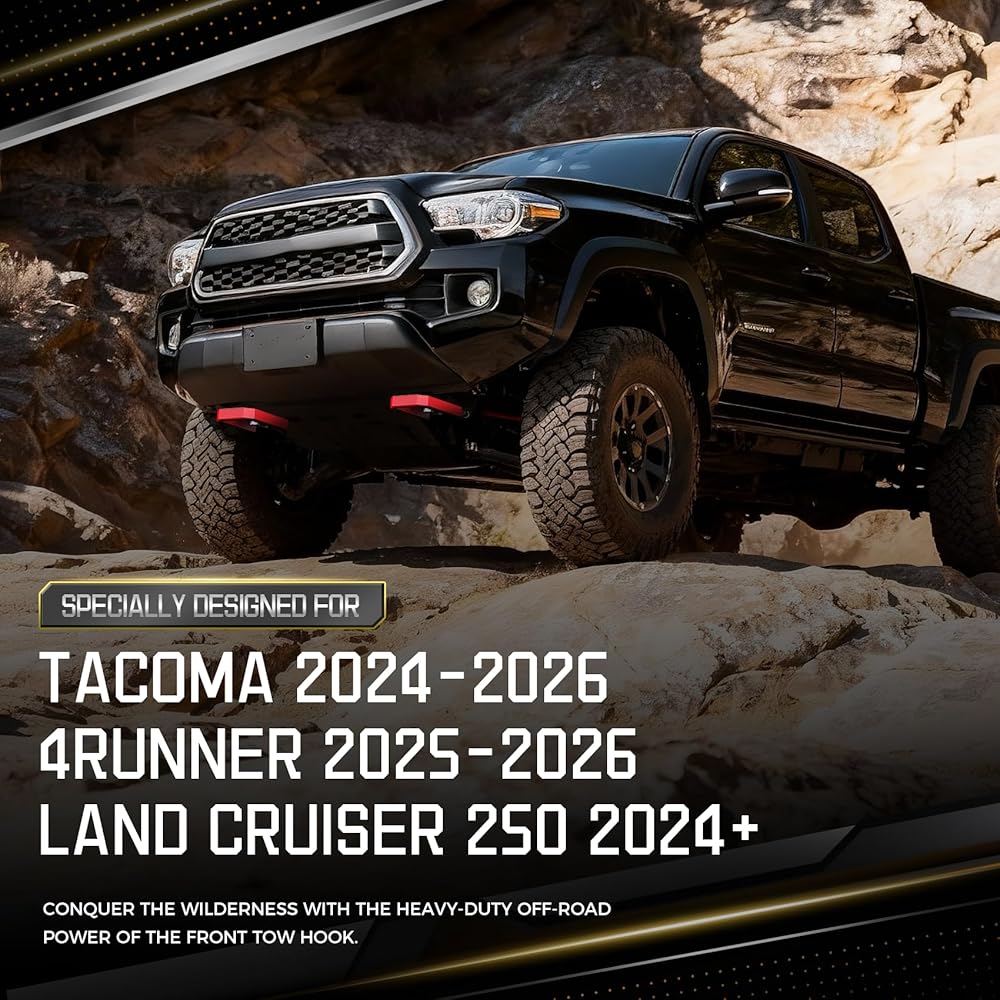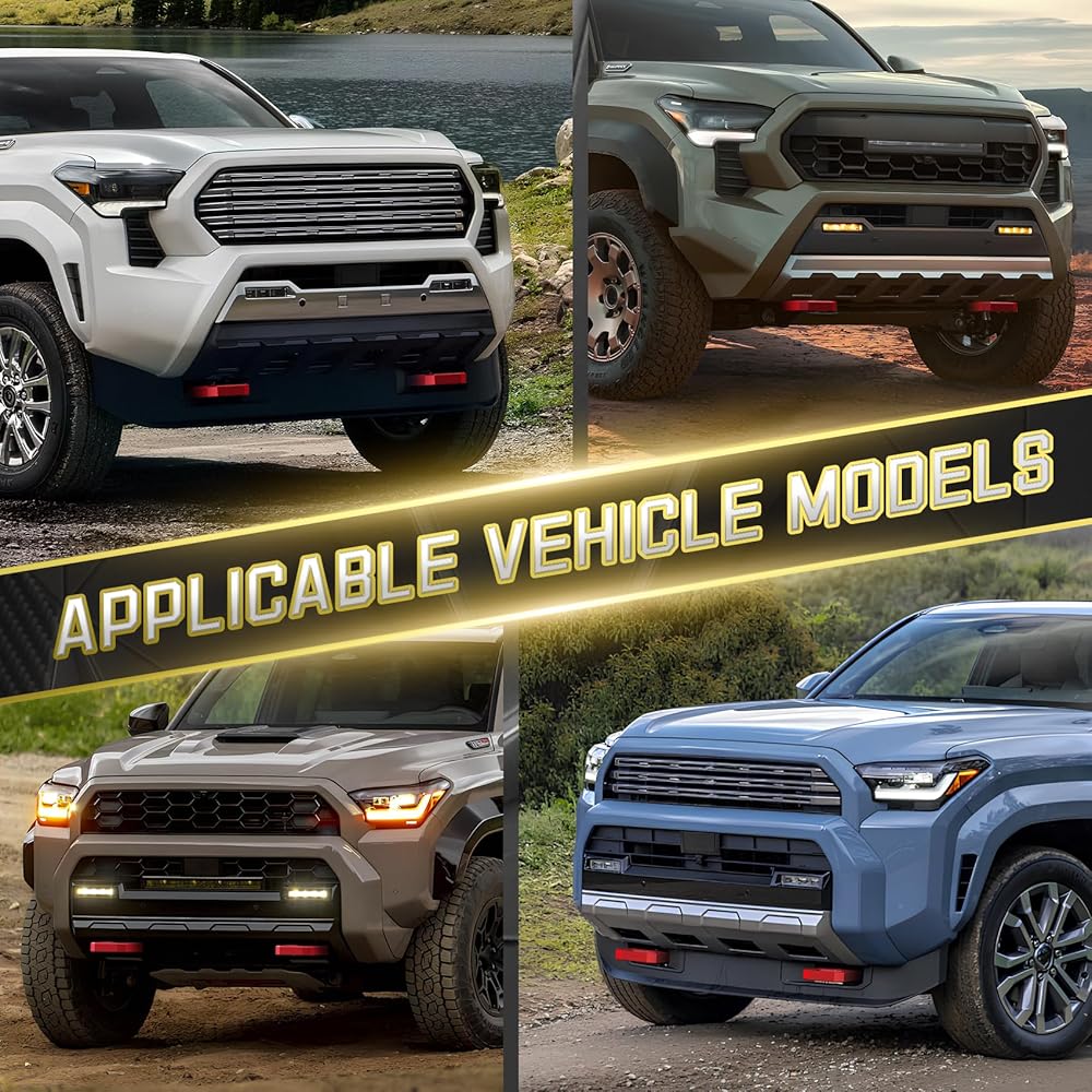 ✅【ملاءمة مثالية】مصممة خصيصًا لسيارة Toyota Tacoma 2024-2026، و4Runner 2025-2026، وLand Cruiser 250 2024-2025. تسمح فتحات التثبيت المحاذاة بدقة بالتثبيت المباشر بمسامير على نقاط التثبيت في المصنع للحصول على ملاءمة آمنة وخالية من القلق تبدو مثبتة في المصنع.