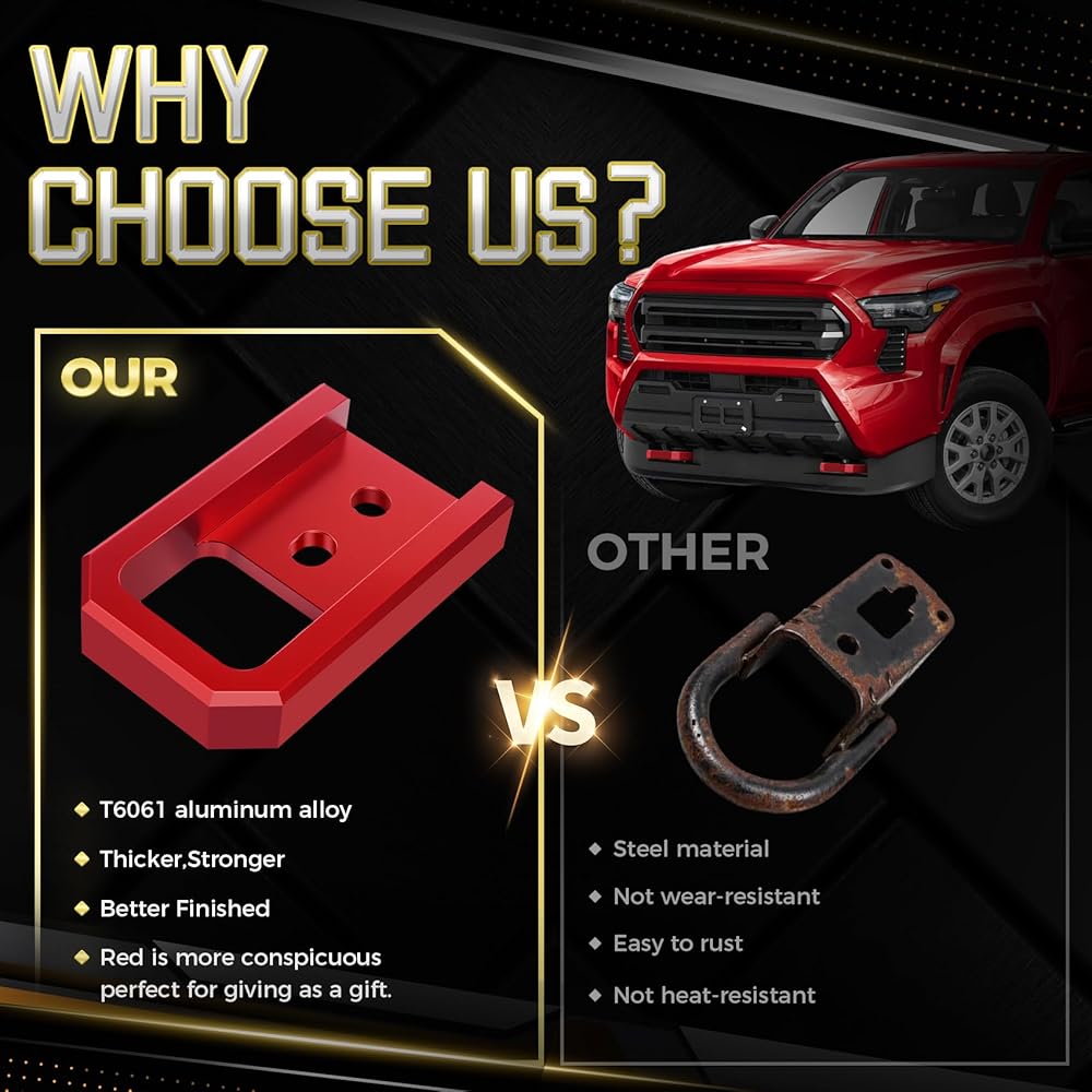 🔩【هيكل ألومنيوم T6061 عالي القوة】مصنوعة من سبائك الألومنيوم T6061 الممتازة، توفر خطافات السحب هذه توازنًا ممتازًا بين القوة والوزن. تم تصنيفها لأحمال عمل تصل إلى 6000 رطل، وهي توفر دعمًا موثوقًا للتعافي للقيادة اليومية ومعظم سيناريوهات الطرق الوعرة.