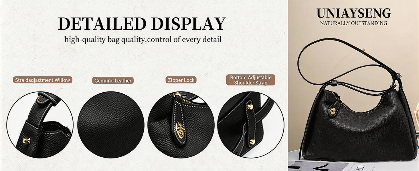 • صناعة فاخرة: تتميز هذه الحقيبة الجلدية للنساء بخياطة مسطحة دقيقة مع خيط نايلون عالي القوة، مما يوفر لمسة نهائية أنيقة ومتانة فائقة وشعورًا فاخرًا.