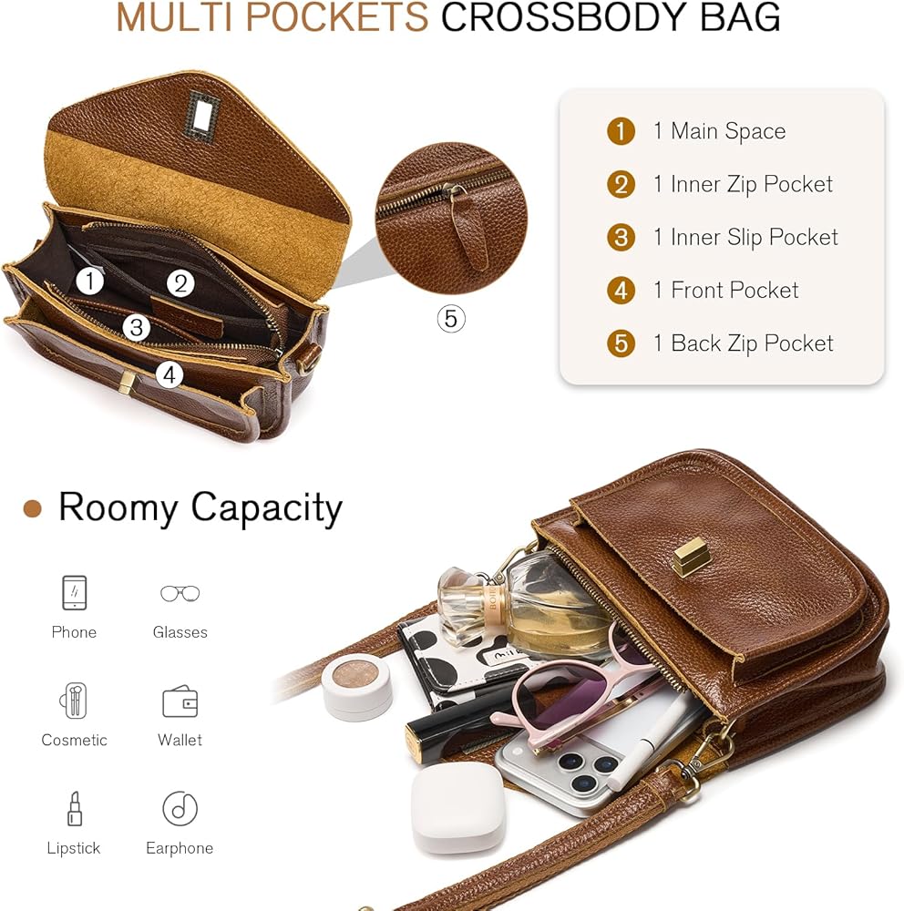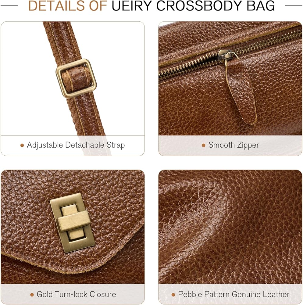 المواد: حقيبة كروس للنساء من UEIRY مصنوعة من جلد أصلي فاخر مع غرز أنيقة وضيقة، وبطانة داخلية من القطن والبوليستر، وصناعة متقنة. أجزاء صلبة متينة وسحاب معدني أملس لجعل حقيبة كروس جلدية تدوم طويلاً.