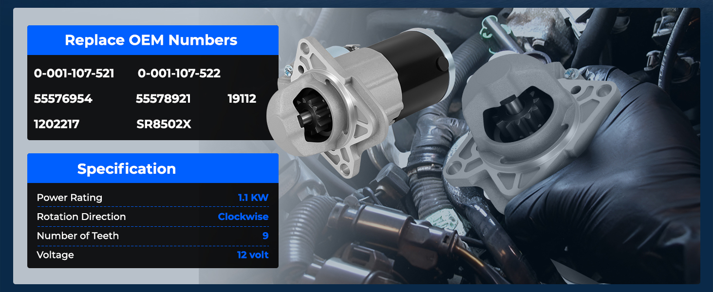 • استبدال رقم جزء OEM: استبدال محرك التشغيل لـ 410-24292، 0-001-107-521، 0-001-107-522، 55576954، 55578921، 19112، 1202217، SR8502X. يرجى التحقق من رقم الجزء/الطراز/الطراز/السنة بعناية قبل الشراء لضمان الملاءمة