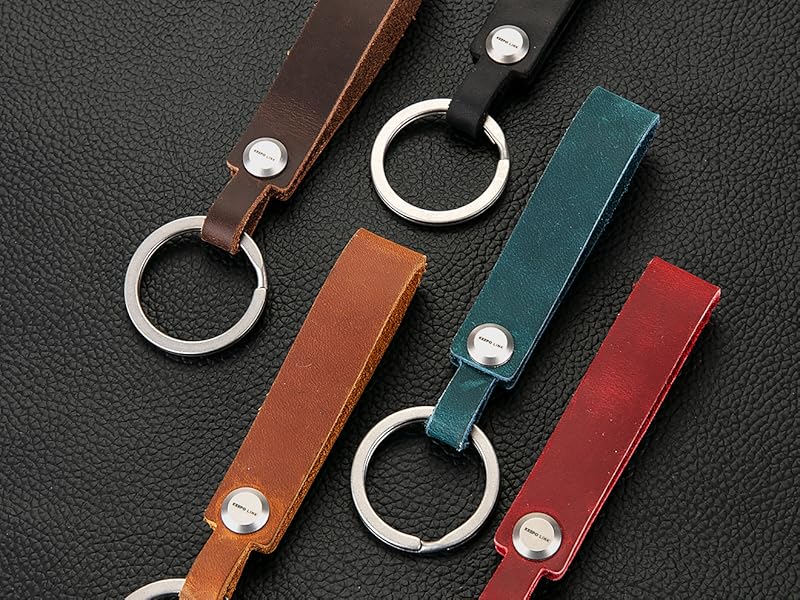 𝐍𝐄𝐕𝐄𝐑 𝐋𝐎𝐒𝐄 𝐘𝐎𝐔𝐑 𝐊𝐄𝐘𝐒 𝐀𝐆𝐀𝐈𝐍: سلسلة المفاتيح الجلدية المميزة هذه تبرز بصريًا، مما يجعل من السهل اكتشاف مفاتيحك في مكان مزدحم حقيبة أو جيب. إنه ينظم مفاتيح سيارتك ومكتبك ومنزلك بشكل أنيق، ويجمع بين المظهر الجانبي النحيف والوظائف العالية لراحة البال اليومية