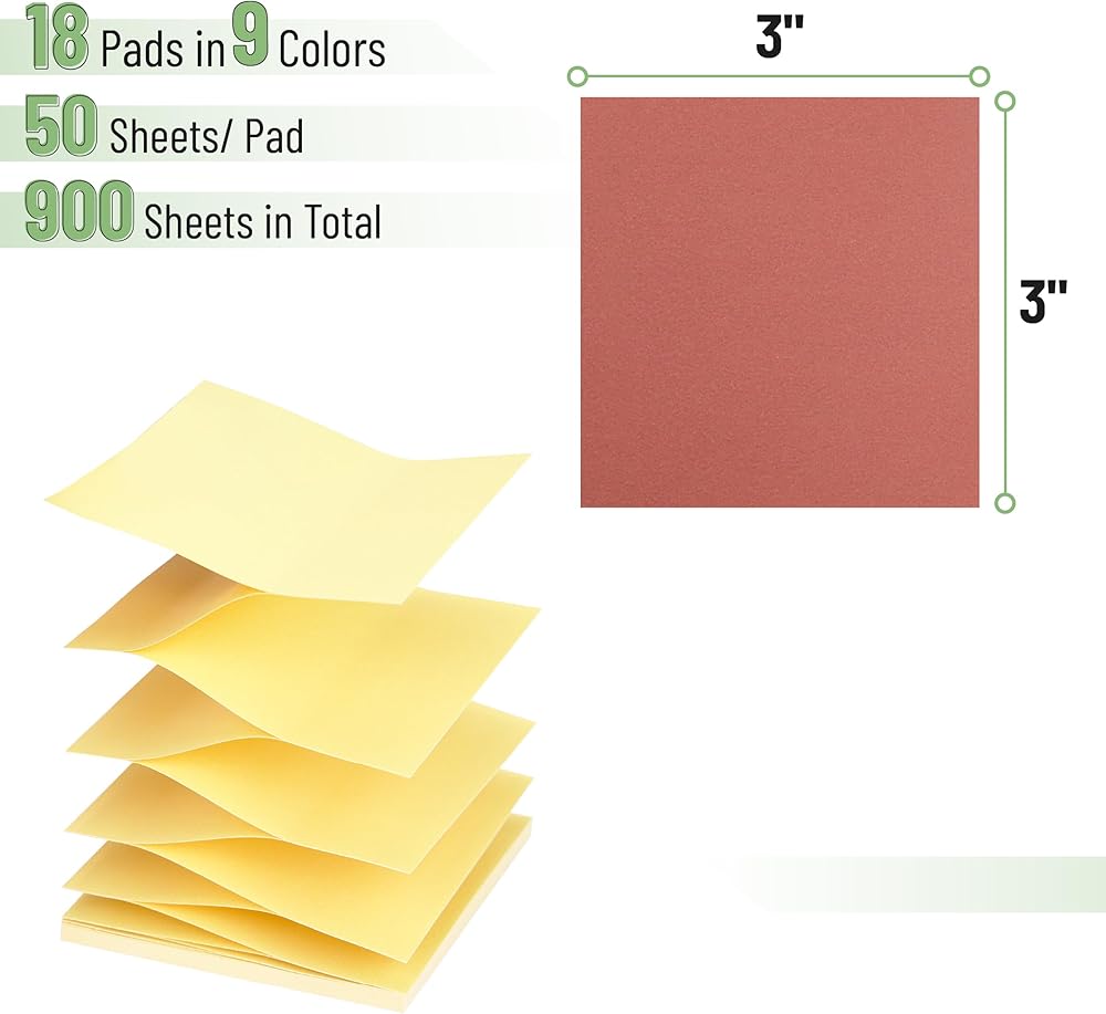 • Mr. Pen pop up sticky notes come in an 18-pad set with a total of 900 sheets, making them ideal for everyday reminders, notes, and organization at home, school, or the office.