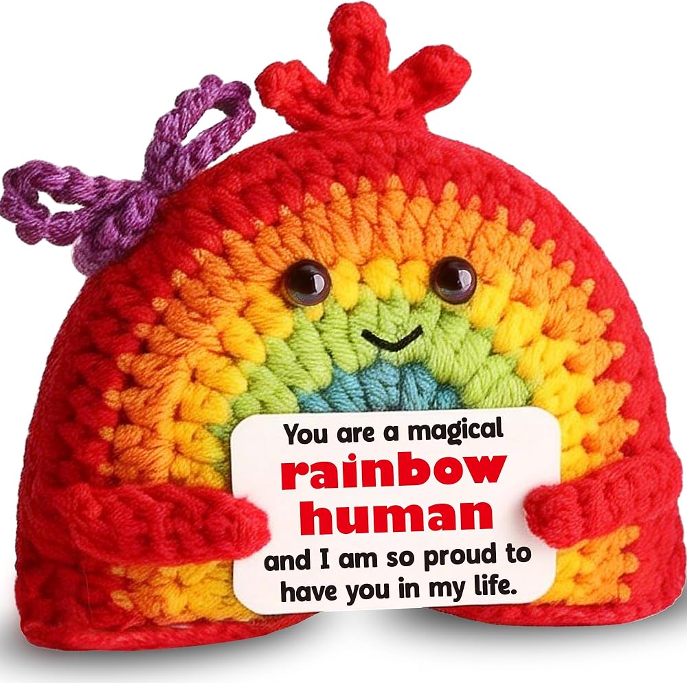 【crochet Home & Office Decor:】:These funny positive emotional crochet Rainbow are compact and conveniently fit into pockets or backpacks. can be applied as birthday gifts, Christmas gifts, Anniversary gifts, party gifts, graduation gifts, wedding gifts, housewarming gifts; They can also be applied as decorations in various places, such as living rooms, bedrooms, offices, classrooms, cafes, shops, etc., to create a happy and positive atmosphere