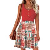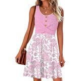 فساتين الصيف للنساء 2026 فستان عصري منسوج من الأمام بتصميم وافل بدون أكمام فساتين صيفية in Kuwait