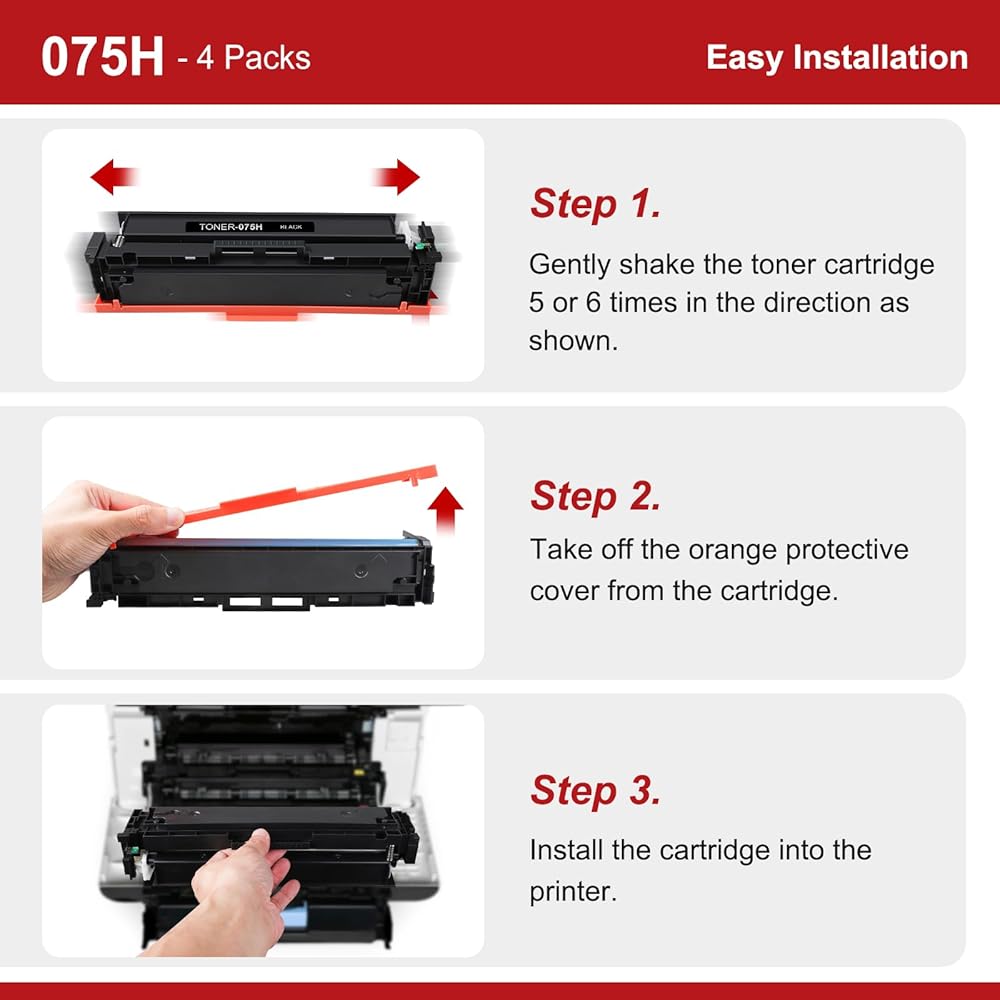 Excellent Performance: The 075H toner cartridges are manufactured with strict adherence to high-quality standards and processes, ensuring reliable printing, full compatibility with Canon printers, and high-quality printouts.
