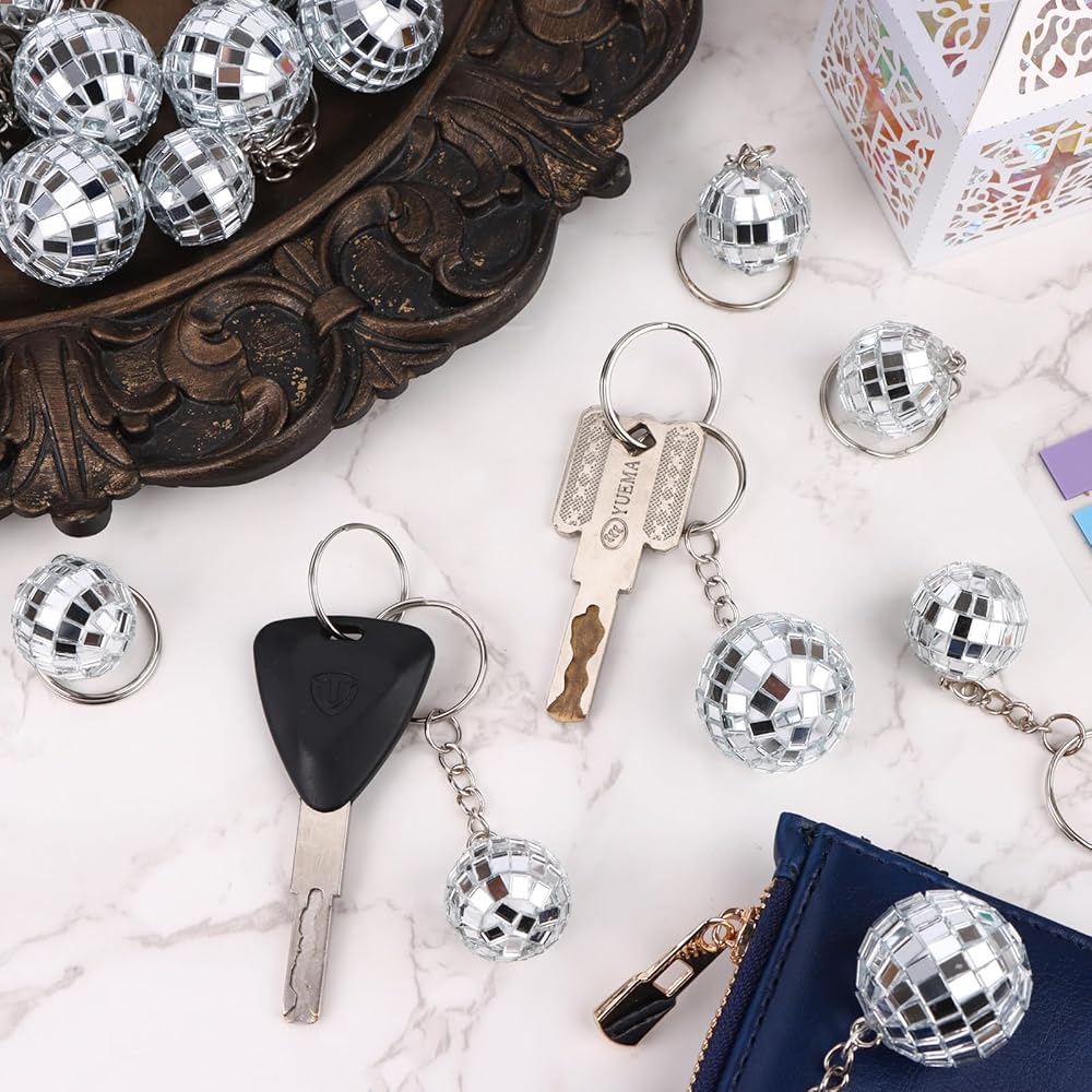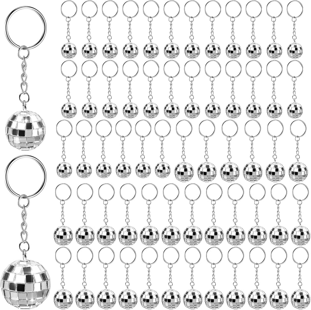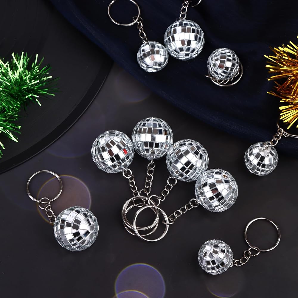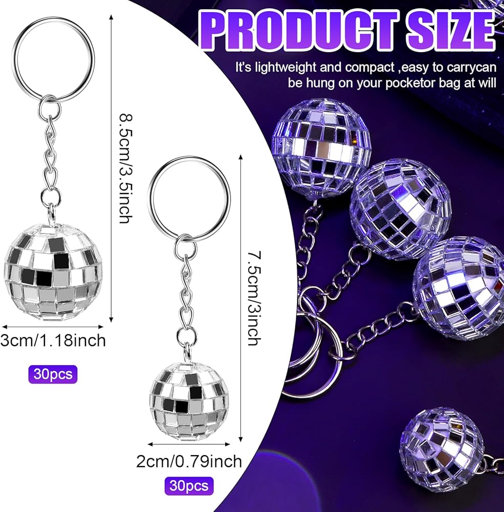Ample quantity:you will receive 60 pcs silver disco ball keychains,2 cm/0.79 inch in diameter*30+3 cm/1.18 inch in diameter*30,two different sizes and ample quantity to meet your daily use and replacement needs,you can also share them with your family and friendsLightweight and Reliable:Our mini disco ball keychain is made of sturdy mirror ball and foam construction for durability and exquisite compactness.Lightweight but sturdy enough for long term use,but to increase product longevity,please be careful to avoid violent impactsFashion and Retro:The disco ball keyring has bright silver glass mirror surface,the combination of many small squares looks stylish and retro,and the classic disco elements are vibrant,fashionable,and dazzlingWide Range of Uses:Disco mirror ball keychain is a fashionable and multi-functional accessory,not only can be used as daily decorations,hanging on handbags,keychains,belt loops,golf bags,etc.,anytime and anywhere to show your personal style,but also can be used as party decorations to bring out the retro fashionable atmosphereThoughtful Gift:These disco ball key chains are great gifts for your family and friends,especially for disco enthusiasts.It's a very thoughtful gesture to give them to your friends at 60s,70s,80s disco themed parties,Christmas,Thanksgiving,Halloween,birthday,everyone will love this exquisite and practical little gift
