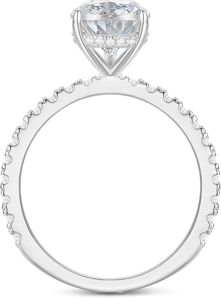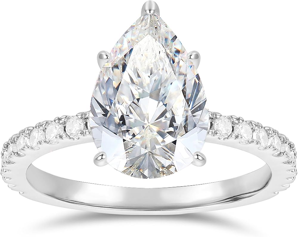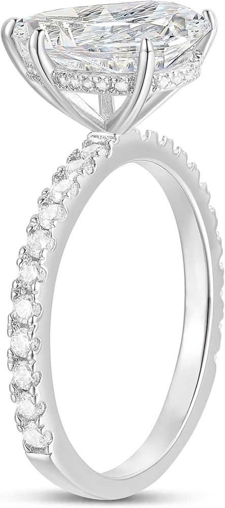 Lispark 14K Gold 4 Carat Pear Cut Moissanite Engagement Ring 14K White Gold Pear Cut Moissanite Rings Hidden Halo Engagement Ring for Women