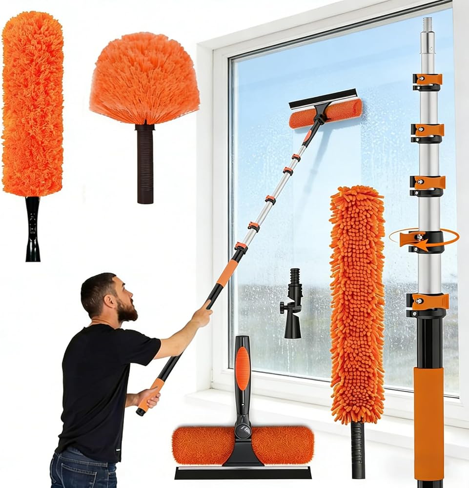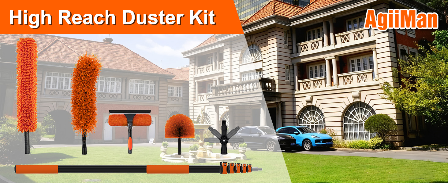 • مجموعات تنظيف الأعمدة متعددة التمديد: مجموعات منفضة AgiiMan مع منفضة ريش، ومنفضة نسيج العنكبوت، ومنفضة مروحة من الألياف الدقيقة قابلة للانحناء، ومنفضة ممسحة نافذة 2 في 1، تكتسح كل زاوية - في الداخل والخارج، والأسقف والأقبية، والسندرات والممرات.