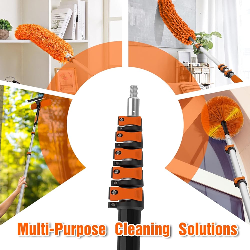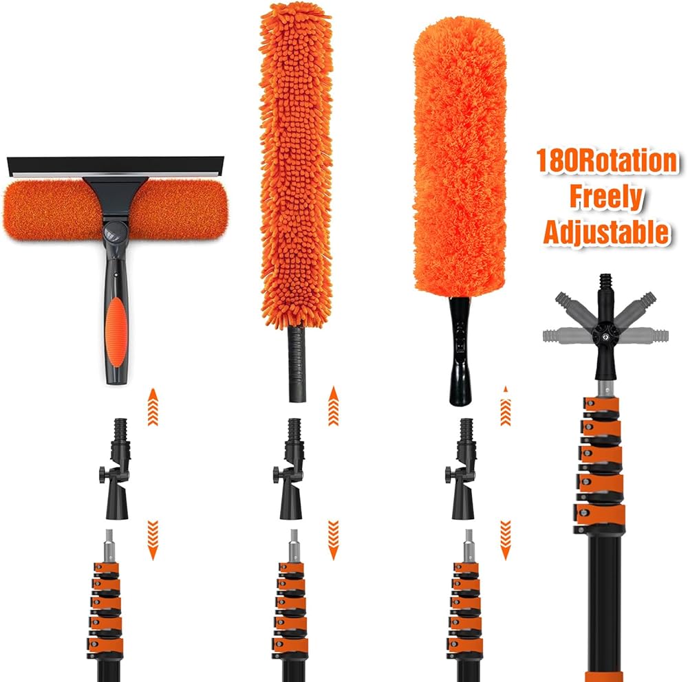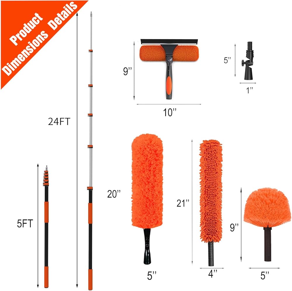 مجموعات منفضة سقف عالية 30 قدمًا مع عمود تمديد تلسكوبي 5-24 قدمًا - منظف شفرة المروحة، مزيل نسيج العنكبوت ومجموعة تنظيف النوافذ، فرشاة غبار قابلة للغسل للأسطح العالية والأسطح الزجاجية