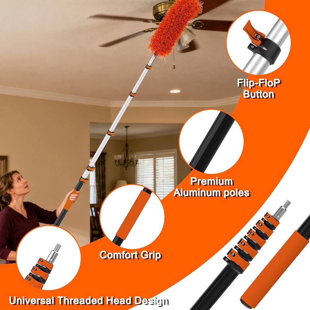 • منفضة قابلة للتمدد فائقة الوصول، تنظيف متعدد الإمكانات: منفضة تنظيف AgiiMan - تعمل كمنفضة قابلة للتمديد - تأتي مع عمود تمديد بطول 5 إلى 24 قدمًا يصل إلى 24 قدمًا، مما يسهل الوصول إلى الأسقف العالية والمراوح والنوافذ الكبيرة.