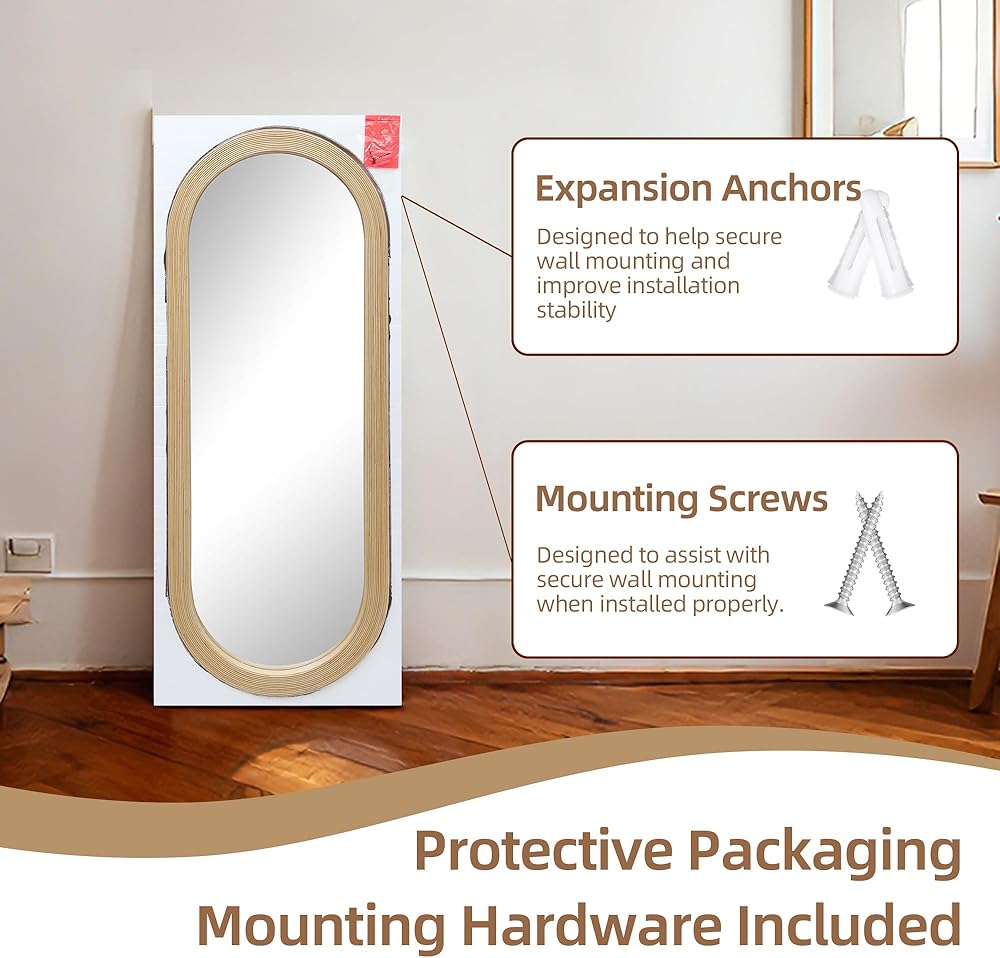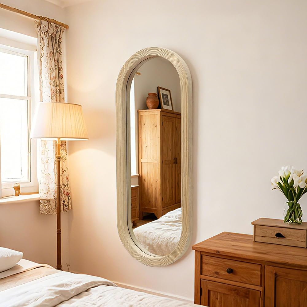 𝐂𝐥𝐞𝐚𝐫, 𝐃𝐢𝐬𝐭𝐨𝐫𝐭𝐢𝐨𝐧-𝐅𝐫𝐞𝐞 𝐑𝐞𝐟𝐥𝐞𝐜𝐭𝐢𝐨𝐧: مصنوع من زجاج مرايا عالي الجودة لتوفير انعكاس مشرق وخالي من التشوه - مثالي لمشاهدة كامل الجسم في غرف النوم وغرف تبديل الملابس ومساحات المعيشة الحديثة.