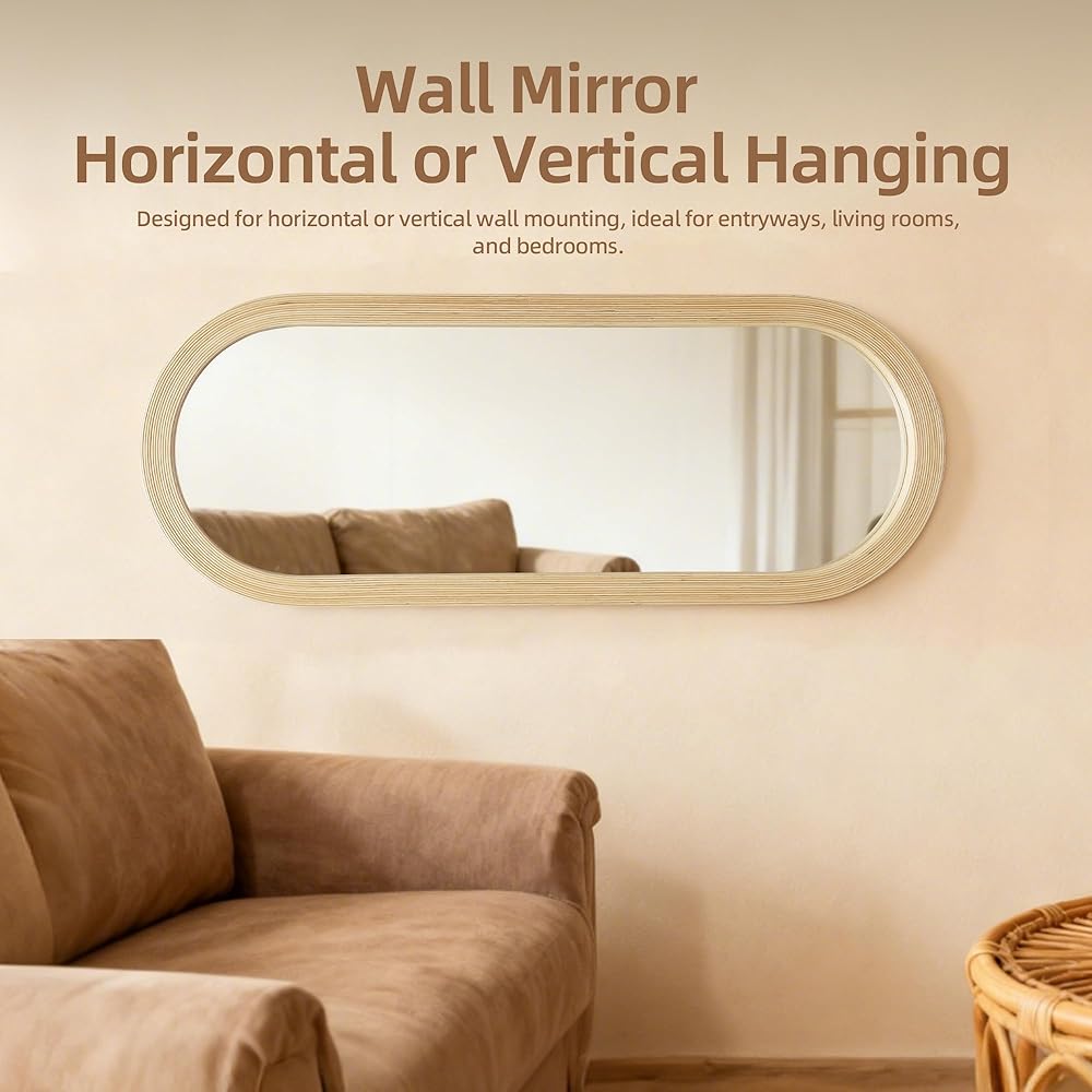 𝐌𝐨𝐝𝐞𝐫𝐧 𝐁𝐨𝐡𝐨 𝐰𝐢𝐭𝐡 𝐑𝐞𝐟𝐢𝐧𝐞𝐝 𝐄𝐥𝐞𝐠𝐚𝐧𝐜𝐞: مصممة لمزج طراز البوهو المعاصر مع تأثير منتصف القرن الدقيق، تضيف مرآة الحائط البيضاوية الممدودة هذه النعومة والشخصية المرتفعة إلى غرف النوم والمداخل ومناطق ارتداء الملابس دون الشعور بالريفي أو القديم. نظرًا لاستخدام الألياف النباتية الطبيعية، قد تحدث اختلافات طفيفة في اللون والملمس - مما يجعل كل قطعة فريدة من نوعها.