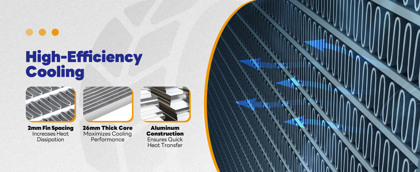 تبريد ألومنيوم عالي الكفاءة: مصنوع من الألومنيوم عالي الكثافة ومبرد زيت مدمج، يوفر هذا المبرد تبديدًا فعالاً للحرارة، ويحسن أداء تبريد المحرك، ويطيل عمر المحرك الخاص بك في ظل الاستخدام الكثيف.