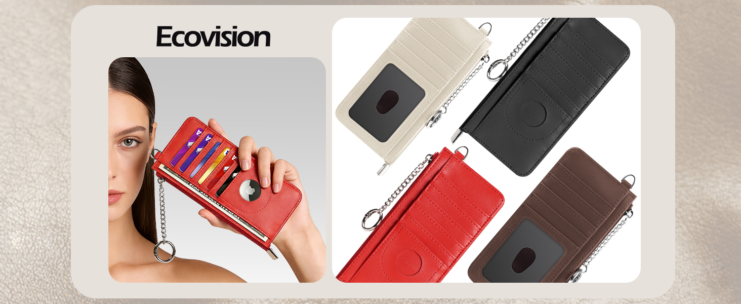 محفظة حامل بطاقات الائتمان النحيفة من EcoVision RFID مع جيب للنقود بسحاب وسلسلة مفاتيح، محفظة Airtag رفيعة للرجال والنساء in Kuwait