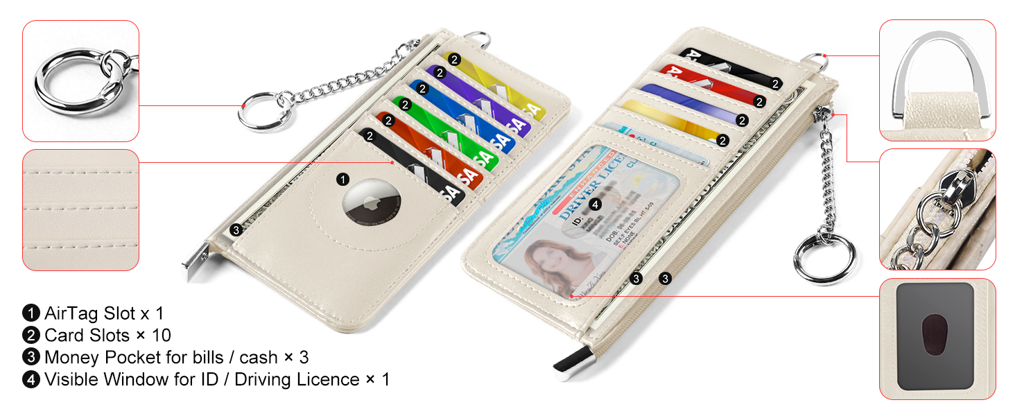 • سعة كبيرة وراحة يومية - هذه المحفظة ذات السحاب تحمل ما يصل إلى 11 بطاقة، وجيبها المزود بسحاب يخزن النقود الورقية والعملات المعدنية غير المطوية. تأتي مع سلسلة مفاتيح معدنية للمفاتيح، وحلقة على شكل حرف D تتيح لك ربط حزام معصم آخر تفضله. يمكنك الاستيلاء على محفظتك بسهولة. مثالية للأشخاص أثناء التنقل.