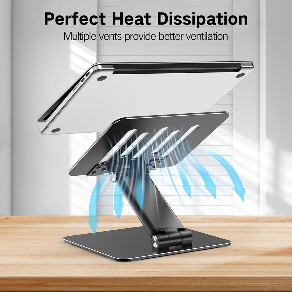 حامل كمبيوتر محمول قابل للتعديل للمكتب، حامل كمبيوتر محمول معدني قابل للطي، حامل كمبيوتر محمول محمول، حامل كمبيوتر محمول تبريد جيد التهوية متوافق مع أجهزة الكمبيوتر المحمولة مقاس 10-17.3 بوصة